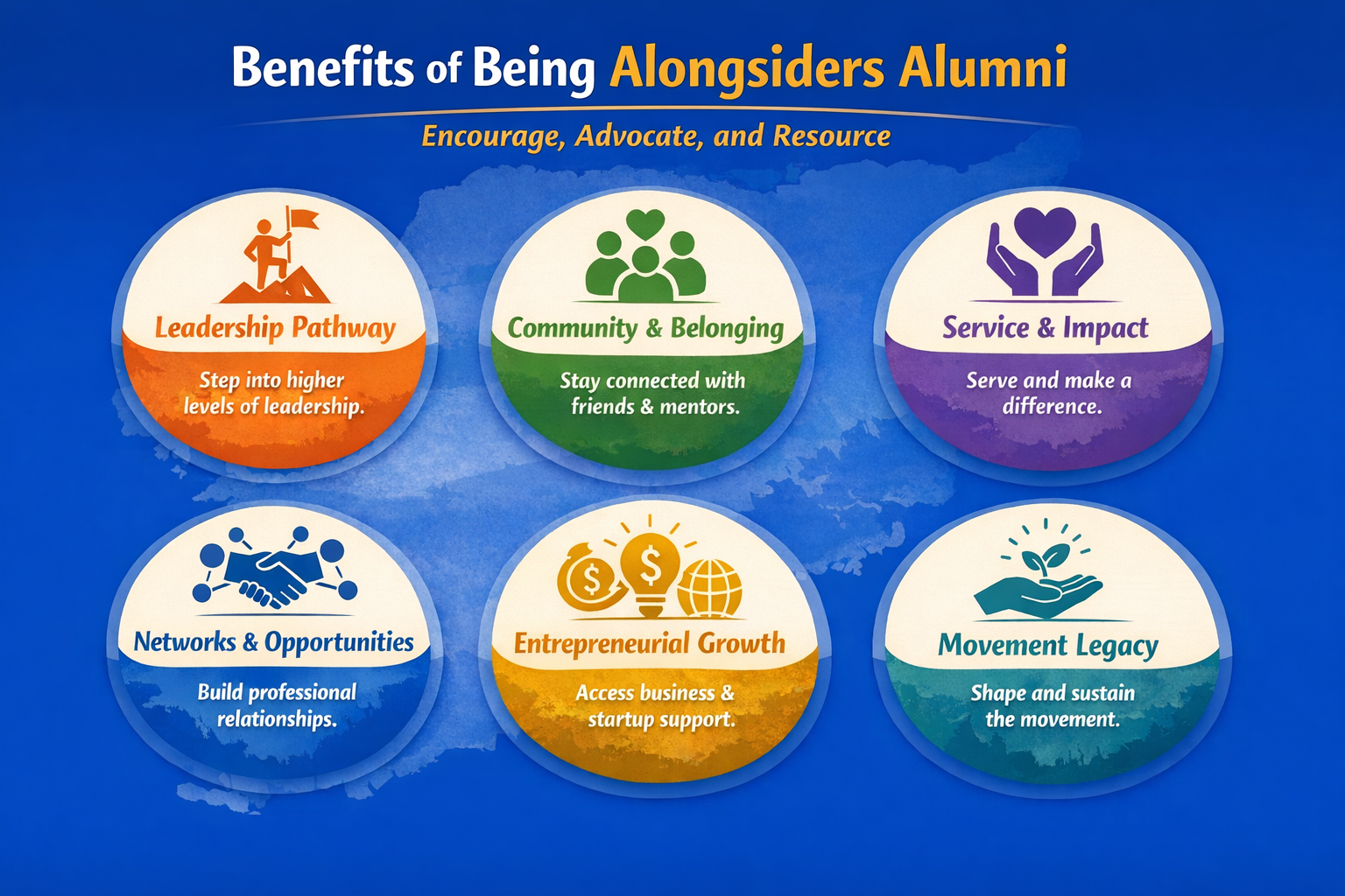 If the Alumni Club is active, engaged, and committed to its role of Encouraging, Advocating, and Resourcing as outlined above, we fully believe each movement can continue to stand more and more on its own two feet and grow to become a more fully owned, self-sustained movement.